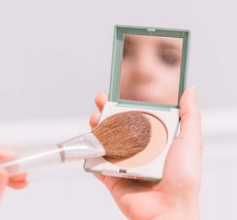 The secret weapon: Stay-Matte Sheer Pressed Powder. It absorbs shine, leaving you with a fresh matte texture.